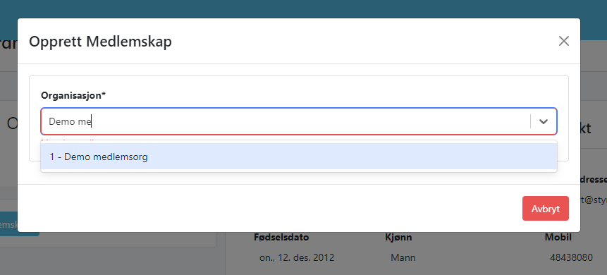- Først må du velge hvilken organisasjon det nye medlemskapet skal være i.