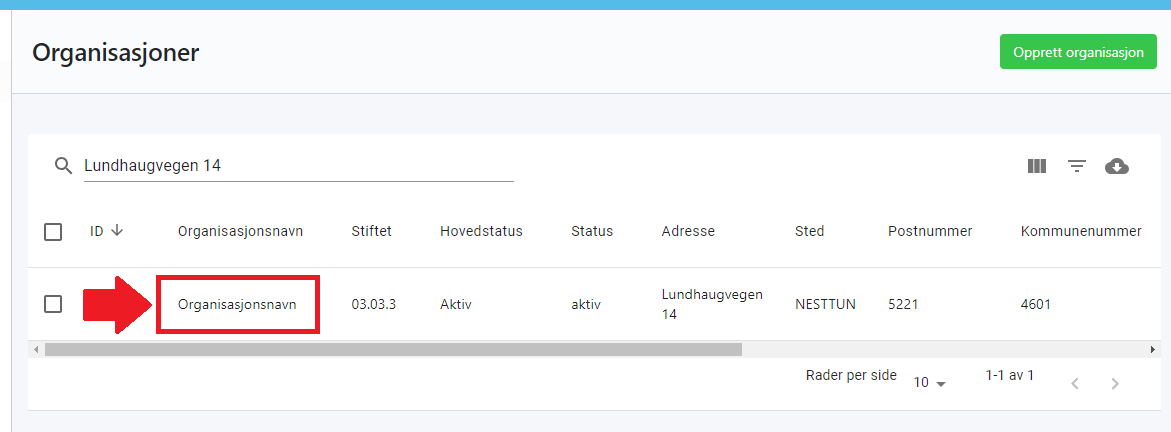 Det er fult mulig å redigere organisasjonsinfo også etter en organisasjon er opprettet. Først finn organisasjonen du skal redigere under tabellen i "Organisasjoner" og trykk inn på organisasjonen. (Se "Hvordan se detaljert info om en organisasjon?" ...